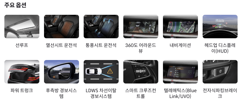 | 열선시트 뒷좌석 | 통풍시트 운전석 | 통풍시트 조수석 | 메모리시트 운전석 | |