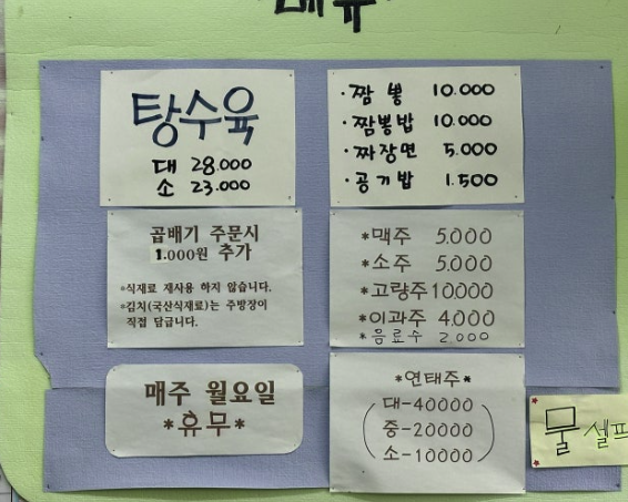- 탕수육 (대/소) – 방송에 나온 대표 메뉴