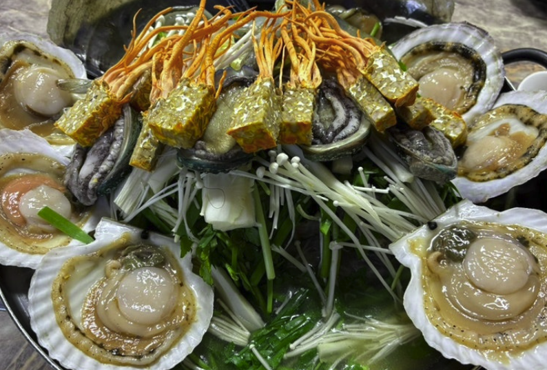 - 메인 재료: 800g~1kg급 피문어, 토종닭, 전복, 키조개, 가리비, 새우, 각종 채소, 동충하초