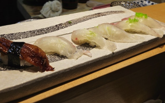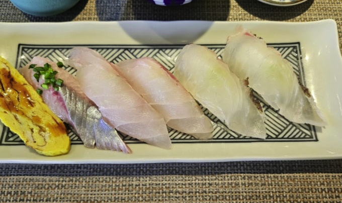 - 서비스 초밥 : 이날은 사장님이 감잇가(갑오징어) 초밥을 하나 더 주셨는데, 부드럽고 달큰한 맛이 정말 인상 깊었어요.