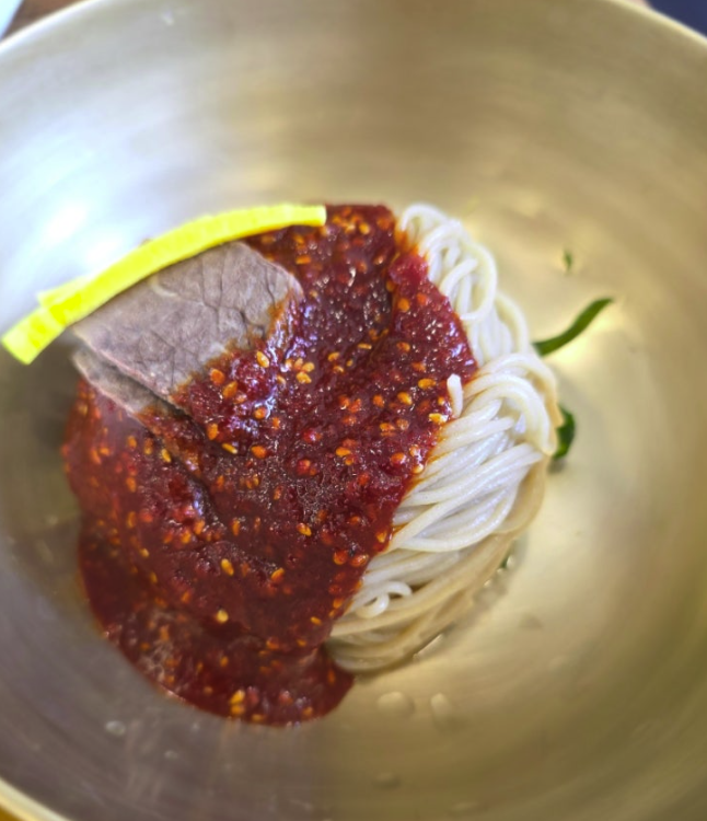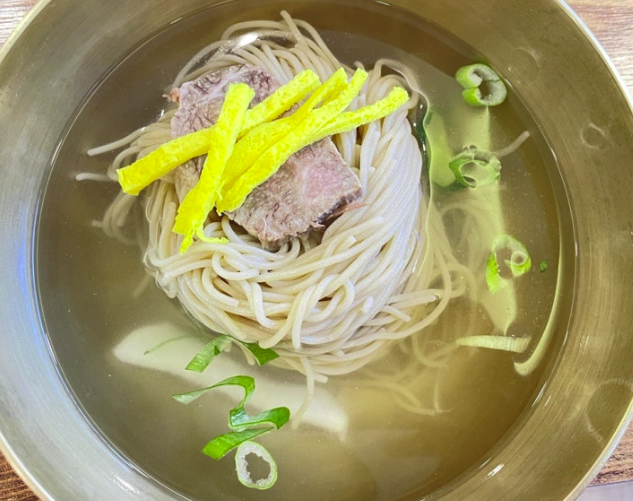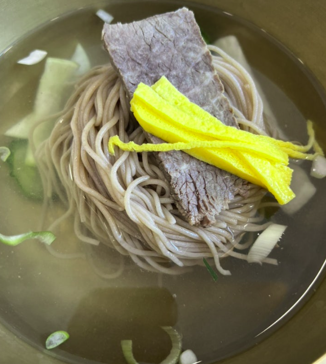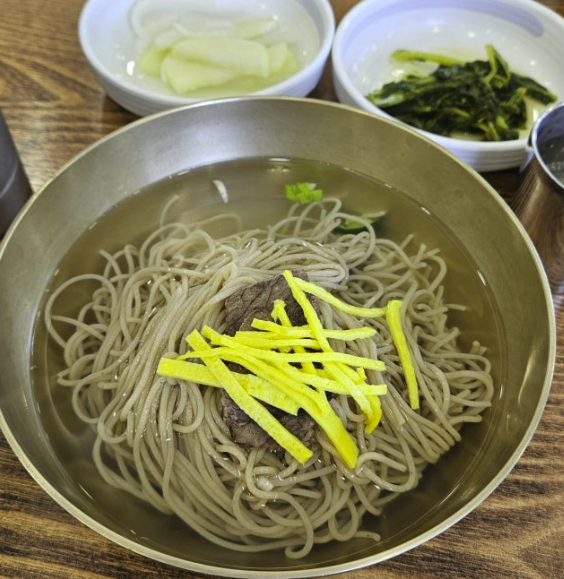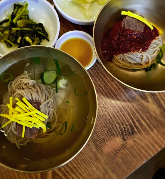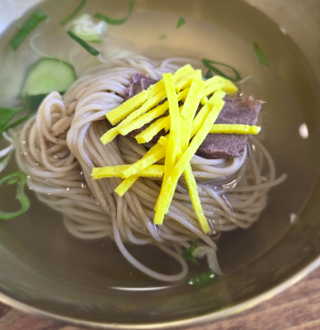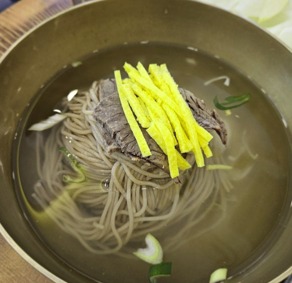 🍜 평양냉면 – 씹는 재미가 있는 굵은 메밀면